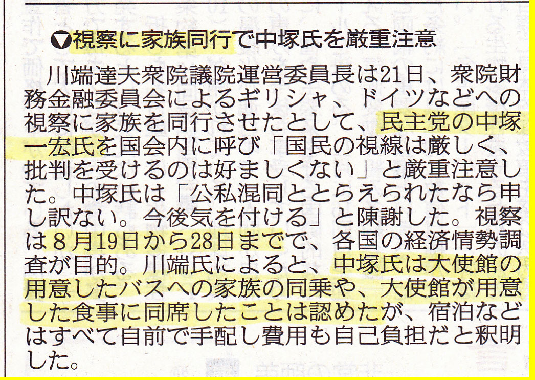 ↑ これは、『民主党 神奈川県第12区 総支部代表の中塚一宏(なかつかいっこう)